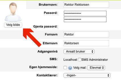 Trykk først på "brukere" og deretter "rediger" (hvis brukeren allerede ligger inne). Trykk så på "Velg bilde", da vil du få mulighet til å laste opp et nytt bilde. I dialogboksen som kommer opp så laster du opp et nytt bilde og deretter kan du rotere og beskjære bildet slik du ønsker det selv.