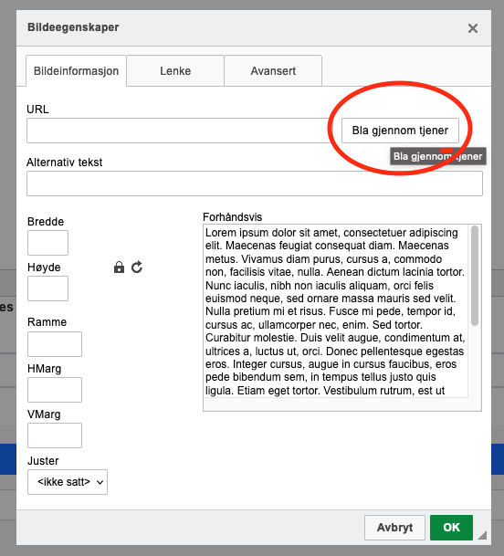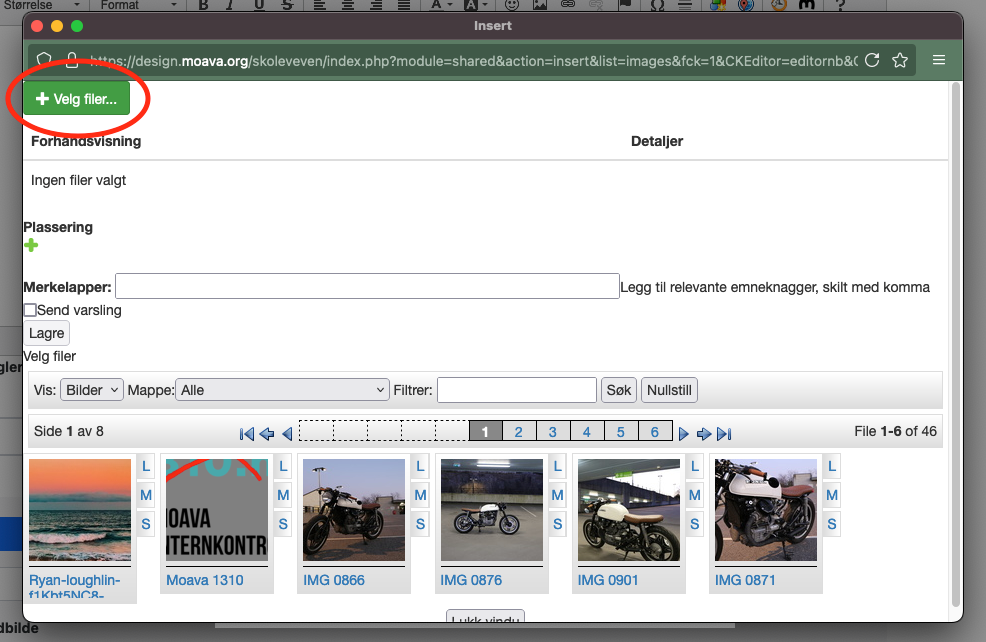 NB: Hvis du ikke får opp vinduene for å laste opp bilder, kan det hende at du har "popup blokkering" på i nettleseren din. Slå dette av.