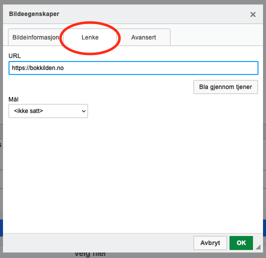 Skriv inn lenkeadressen du vil at folk skal gå til når de klikker på bildet.
