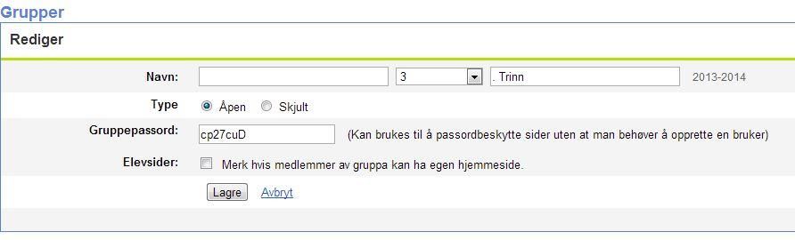 4. Tast inn et nytt passord til gruppen. (Passordet til en gruppe kan brukes til å lage passordbeskyttede sider, eller bildealbum).