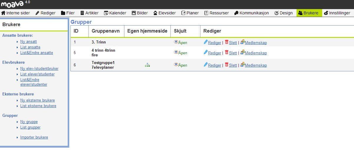 - Klikk på menyvalget "Brukere" i hovedmenyen