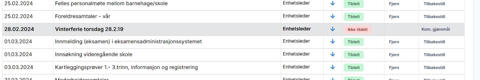 Når du har endret det du vil, klikk på knappen «Tildel» for å tildele gjøremålet ut til skolene eller barnehagene.