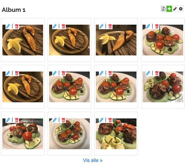 Det er nå mulig å laste ned alt innhold i et album. Hvert album har nå en ny knapp som illustrerer en pakket fil, man ser det i eksempelet under til venstre for den grønne plussen. Dette ikonet kan man trykke på for å få generert en pakke som lages i zip format og lastes ned til lokal datamaskin. Husk at det kan ta litt tid om albumet er stort.