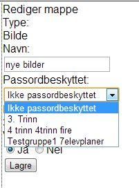 4. I feltet " Passordbeskyttet" vil alle grupper som har passordbeskyttelse fremkomme. Velg hvilke gruppe albumet skal tilhøre. Albumet vil da få passordet til den gruppen som du tilordnet.