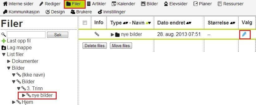 3. I menyen til venstre, velg " Bilder". I vinduet til høyre listes album(ene). Velg den blå blyanten til høyre for albumet du vil sette passord på.