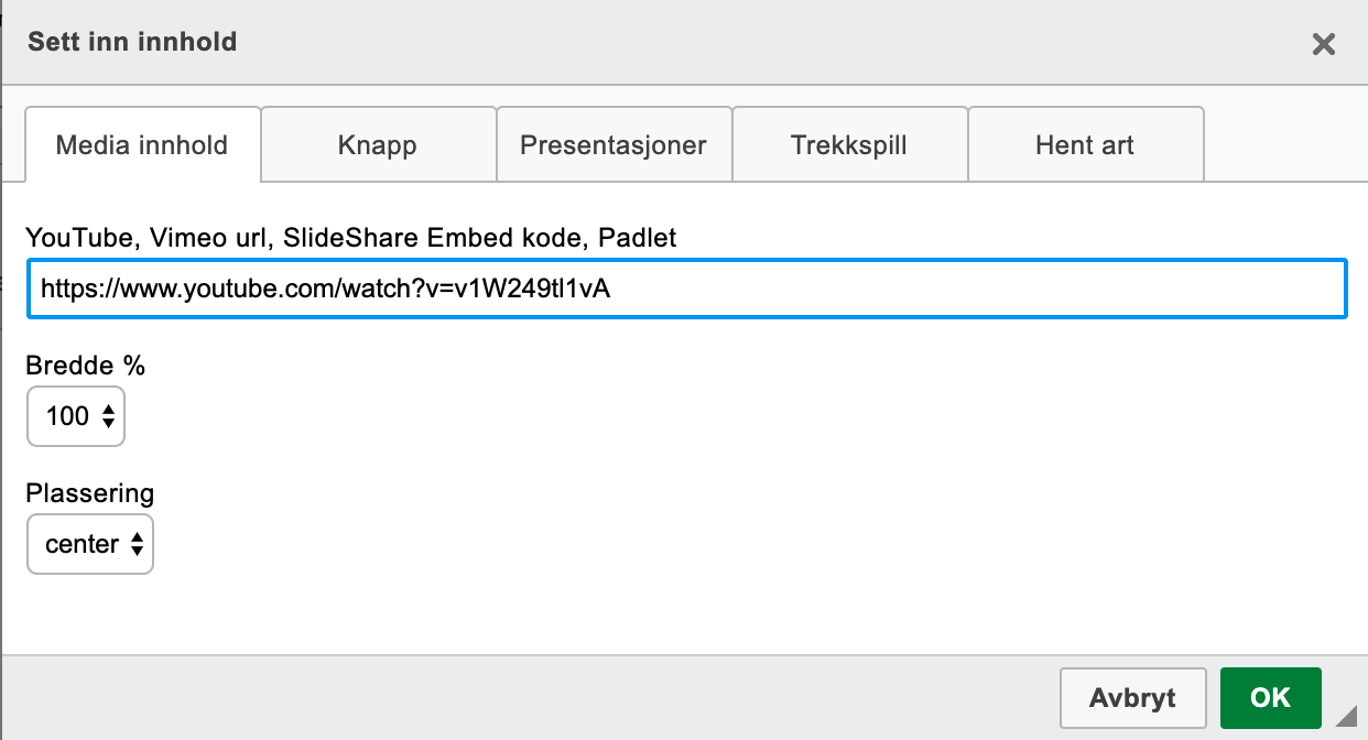 For å sette inn video raskt og enkelt i en artikkel gjør du følgende: