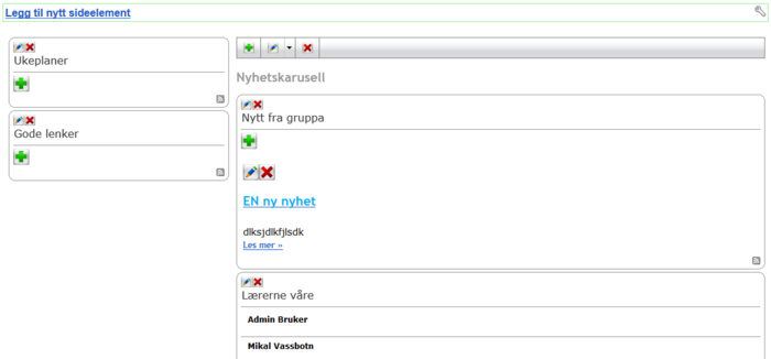 For å legge til en ny nyhet direkte i karusellen, klikk på det grønne plusstegnet. Skriv nyheten som vanlig, og last opp bilder.