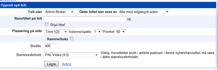 å plassere nyheten både i en nyhetskarusell og et vanlig nyhetsfelt, vil evt. andre bilder du laster opp vises i nyheten som er plassert i nyhetsfelt.