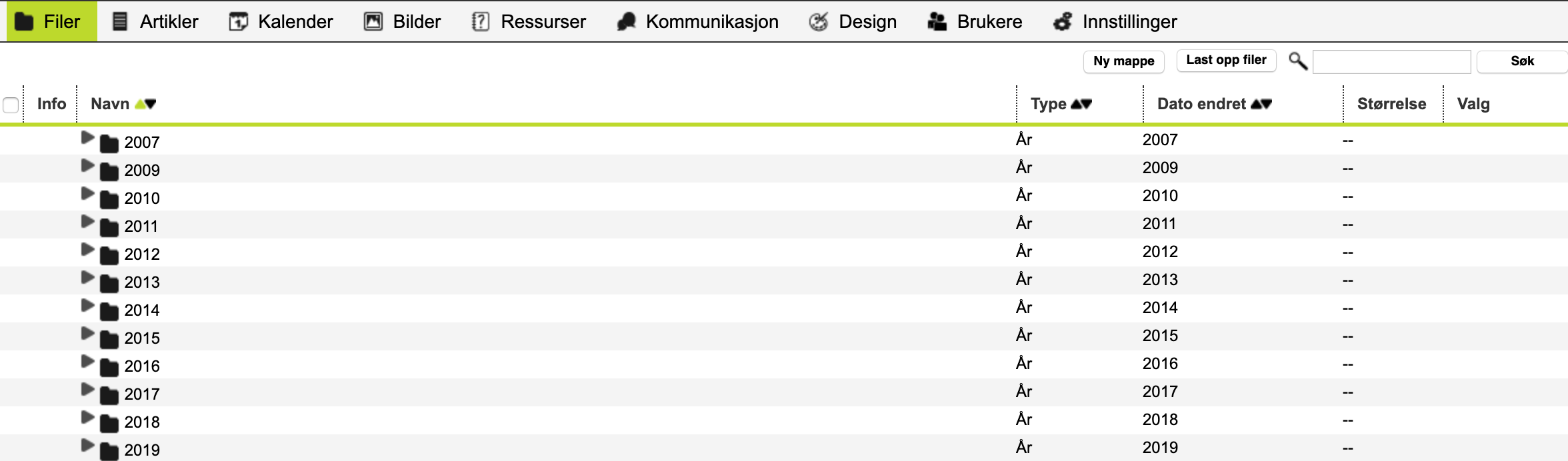 Trykk på “filer” og deretter naviger deg frem til albumet hvor bildene ligger. Hvis du er usikker på hvor bildene ligger kan du gjerne bruke søkefunksjonen i høyre hjørne. Løse filer, altså filer som ikke ligger i menyen finnes under “løse filer”. Her er mappene organisert etter årstall og deretter måned.