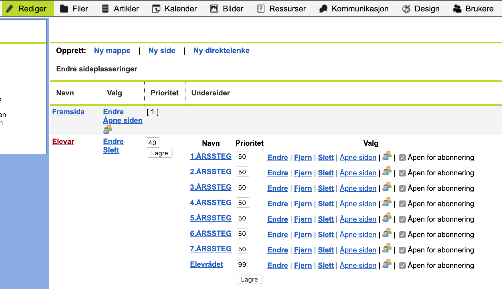 Over tid så kan det hope seg opp med gamle sider. De kan f.eks være gamle klassesider/trinnsider eller så kan det være sider man ikke lengre har bruk for.
